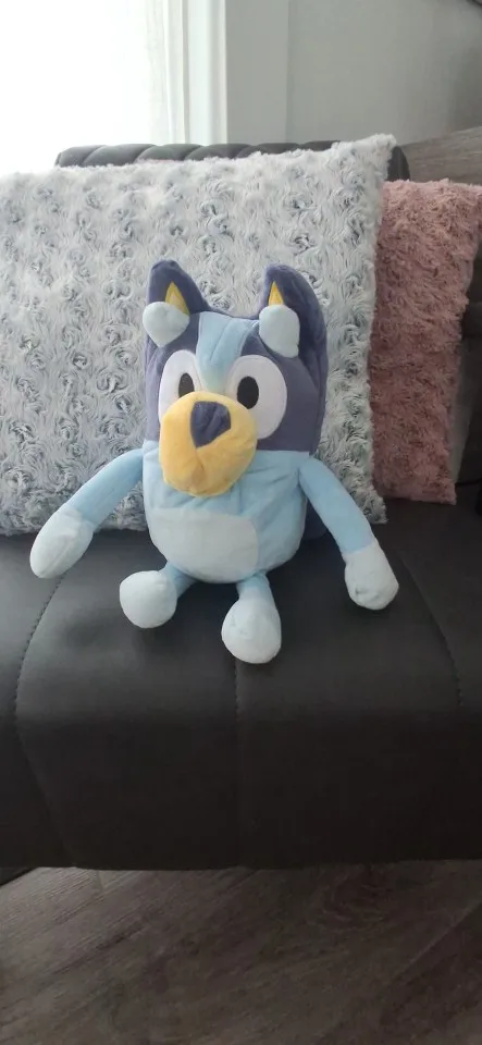 Bluey siempre ha sido la caricatura favorita de mi hijo y enloqueció cuando lo vió. Ahora lo lleva a todas partes. Muy lindo.